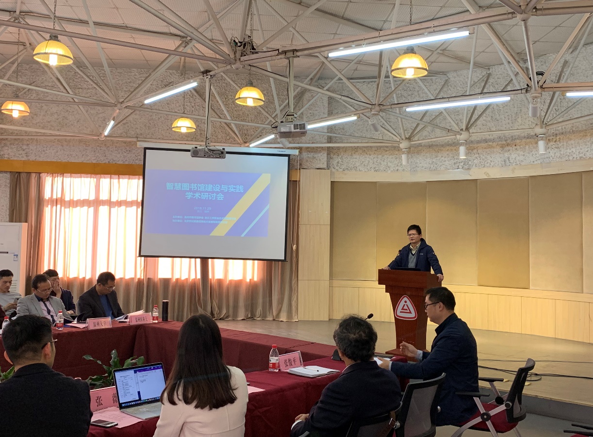 11月29日,由温州市图书馆学会、浙江工贸职业技术学院图书信息中心主办,北京世纪超星信息技术发展有限责任公司协办的“智慧图书馆建设与实践研讨会”在浙江工贸职业技术学院举行,来自温州市各高校图书馆、市图书馆、市少儿图书馆、各区县图书馆馆长以及业务骨干等40余人参加了本次会议。本次研讨会以“智慧图书馆建设与实践”为主题,力在促进图书馆服务创新和转型,实现现代化智慧图书馆建设。
