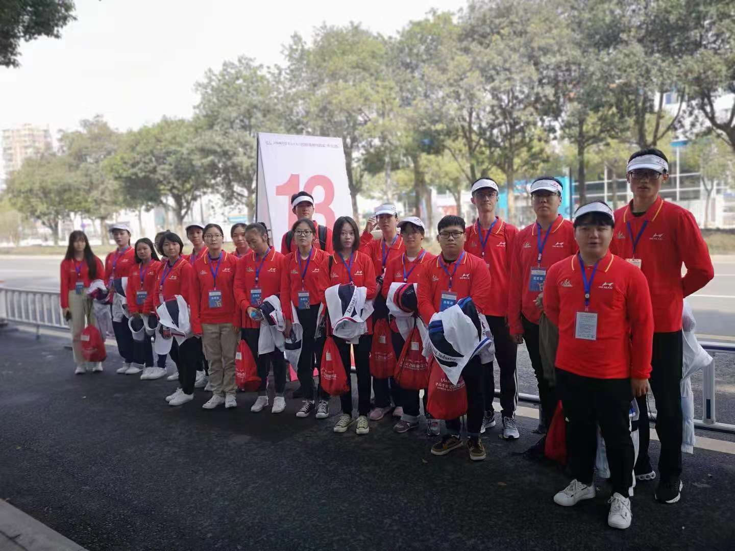 经过前期的筹备、报名筛选、岗前培训、集中动员。12月2日清晨四时许,天色仍未破晓,358名工贸志愿者们早已整装待发,乘坐大巴,奔赴各个站点就位。本届马拉松参赛总人数为12798名,比赛分为四个项目,全程马拉松、半程马拉松、迷你马拉松和家庭跑。比赛全程42.195公里。每隔2.5公里,都会设有一个医疗站,同学们穿着志愿者服装,戴上志愿者牌照;为开跑前做好一切准备,组长安排各个位置的站点,同时协助跑团整理物资,在温马的全程跑道上,闪动的是工贸学子们忙碌的身影。