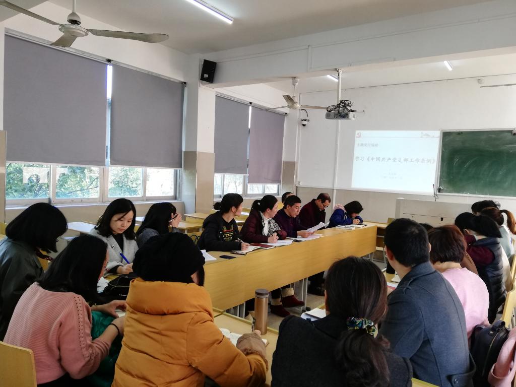 为深入学习贯彻习近平新时代中国特色社会主义思想和党的十九大精神,进一步推动“两学一做”学习教育常态化、制度化,不断提升广大党员的政治思想水平。12月18日下午,人文系党总支开展主题党日活动,专题学习党中央印发的《中国共产党支部工作条例(试行)》。