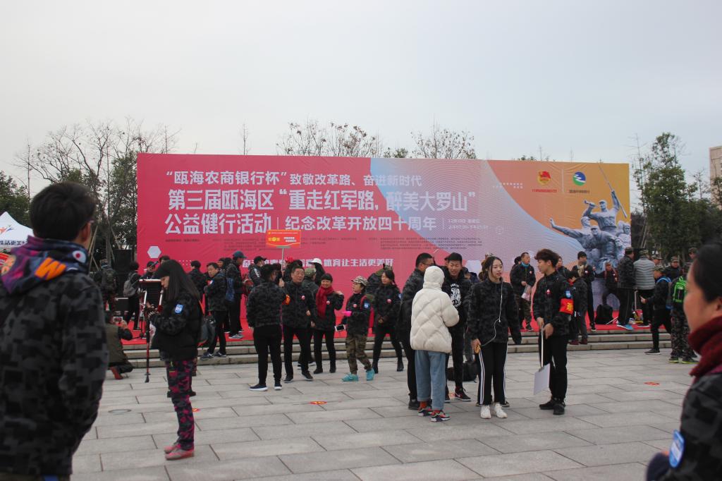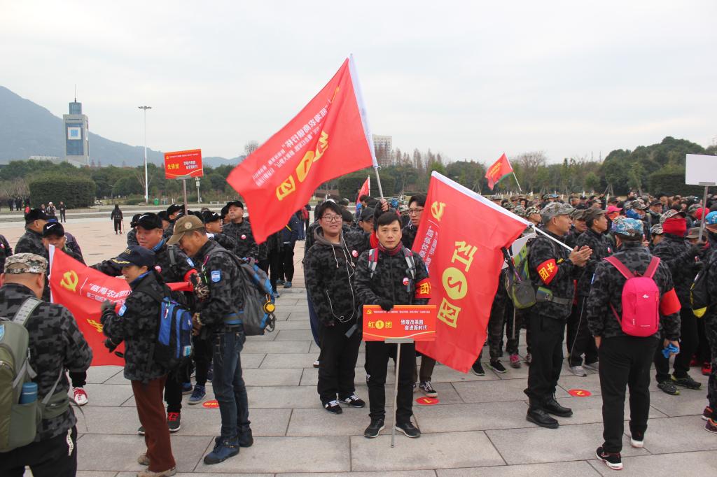 12月30日早上6点40分,30名队员穿上制服,在六号楼集合并坐上校车前往出发点。7点30分,来自全市的28个团,800多名参赛者在温州大学学子广场集合并举行开幕式。此次健步走活动路线为浙南游击队活动路线,沿途经中共交通站旧址、和平解放温州集结地周岙、下寨坦、共军歼灭国军铁路警察战争旧遗、周岙板障岩、山头草等红色遗址,最后在温州大学学子广场会师,总计15公里,历时180分到210分不等。活动出发前,来自不同组织的28个团分别在主办方的引导下,进行了物资补充以及团旗的授旗仪式。在活动中,汽机分院学生党支部的成员们怀揣着满腔的热情投入行走之路。一路上,汽机学子高唱《团结就是力量》红歌,斗志昂扬地翻越了大马路、小泥路和山坡台阶。途中,有同志因身体原因逐渐慢下前进脚步,但是队员们本着不抛弃,更不放弃的精神,互帮互助,一起克服苦难,顺利抵达了目的地温大学子广场,圆满完成了“重走红军路,最美大罗山”活动。