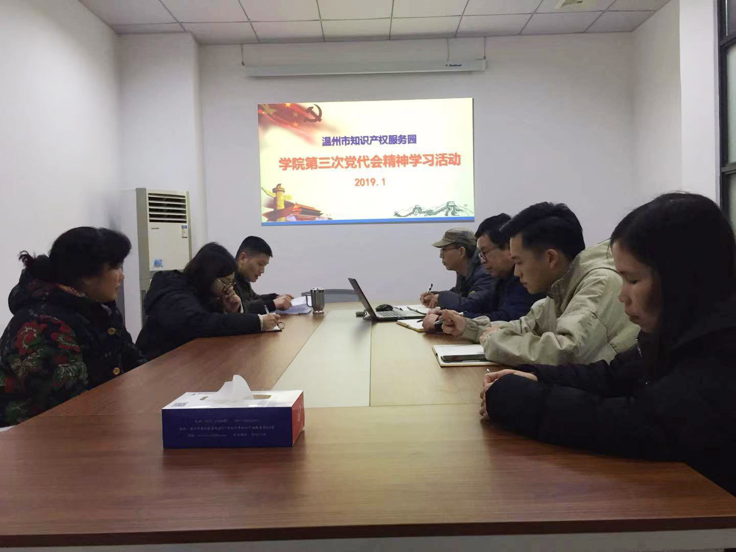 2019年1月18日,我院的温州市知识产权服务园党支部举行了学院第三次党代会精神学习活动,服务园党政负责人及园区直属的全体党员及员工参加了学习活动,学习活动由支部负责人徐辉主持。
