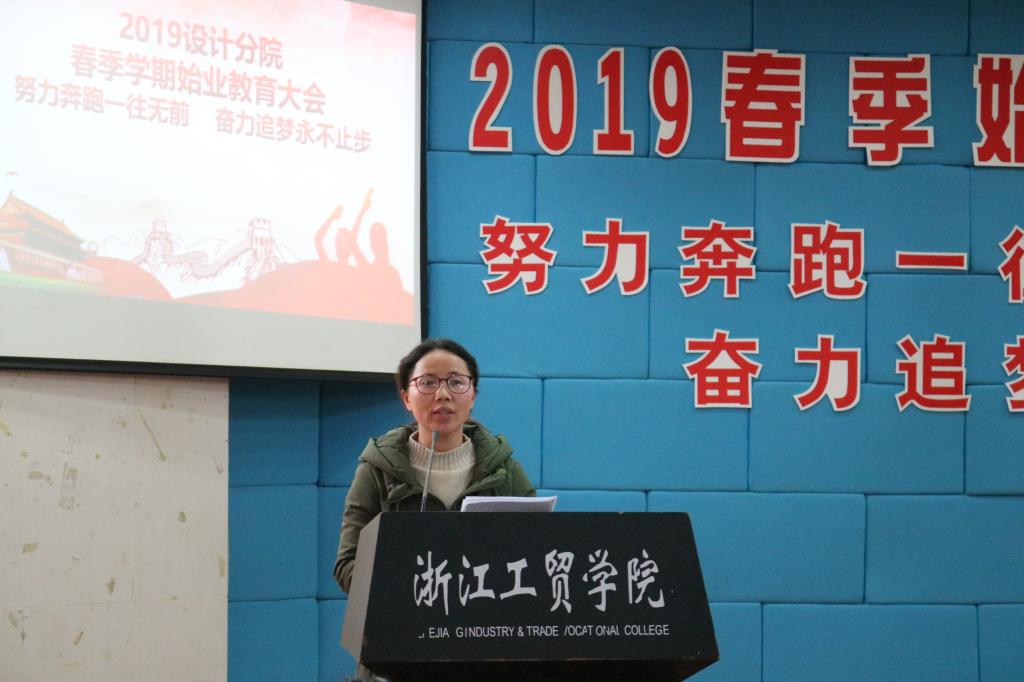 2月24日,设计分院主题为“努力奔跑一往无前 奋力追梦永不止步”的2019年春季学期始业教育在一号楼阶梯教室举行。大会分两场进行,分院党总支书记杨松涛,辅导员陈剑、谢娇莲、高莎,2017级、2018级班主任及全体学生参加大会。