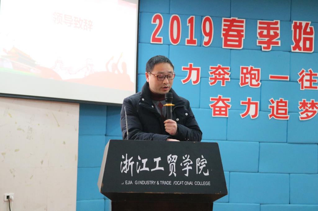 党总支书记杨松涛首先致辞。他首先向同学们表达了新春问候。他指出,每个人都有自己的小目标,每个人都有努力的大方向,努力的作为才能实现目标,奋发的行动方能实现价值。他就新学期对同学们提出几点希望:一是珍惜时间。“凡是过往,皆为序章”,你愧对了时间,时间便会把你愧对。奋发有为的新时代需要勤劳担当的新青年,同学必须用只争朝夕的大学时光奠定未来发展的基础;二是珍惜健康。他用毛主席的名句“文明其精神,野蛮其体魄”勉励同学们锻炼身体,保持乐观豁达的心态。三是珍惜所处的伟大时代。以自尊自信自强自立的姿态,自勉自省,乘新时代之浩荡东风,用青春之我奋斗之我谱写人生发展之美好华章。