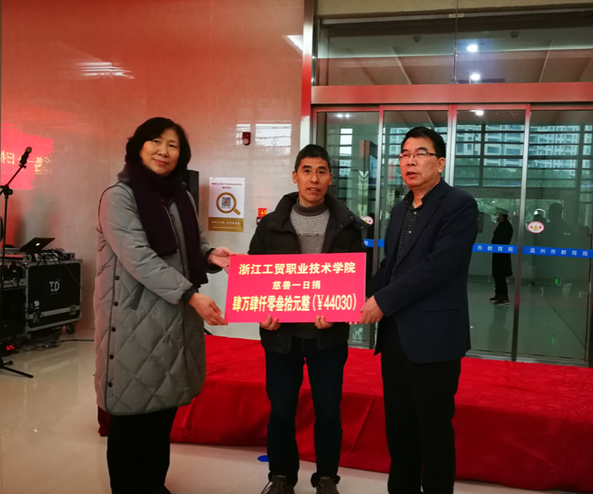 3月1日下午,2019年温州市本级教育系统“慈善一日捐”捐赠仪式在市教育局一楼大厅举行,学院工会常务副主席章纪顺参加仪式,代表我院教职工向温州市慈善总会捐赠善款44030元。