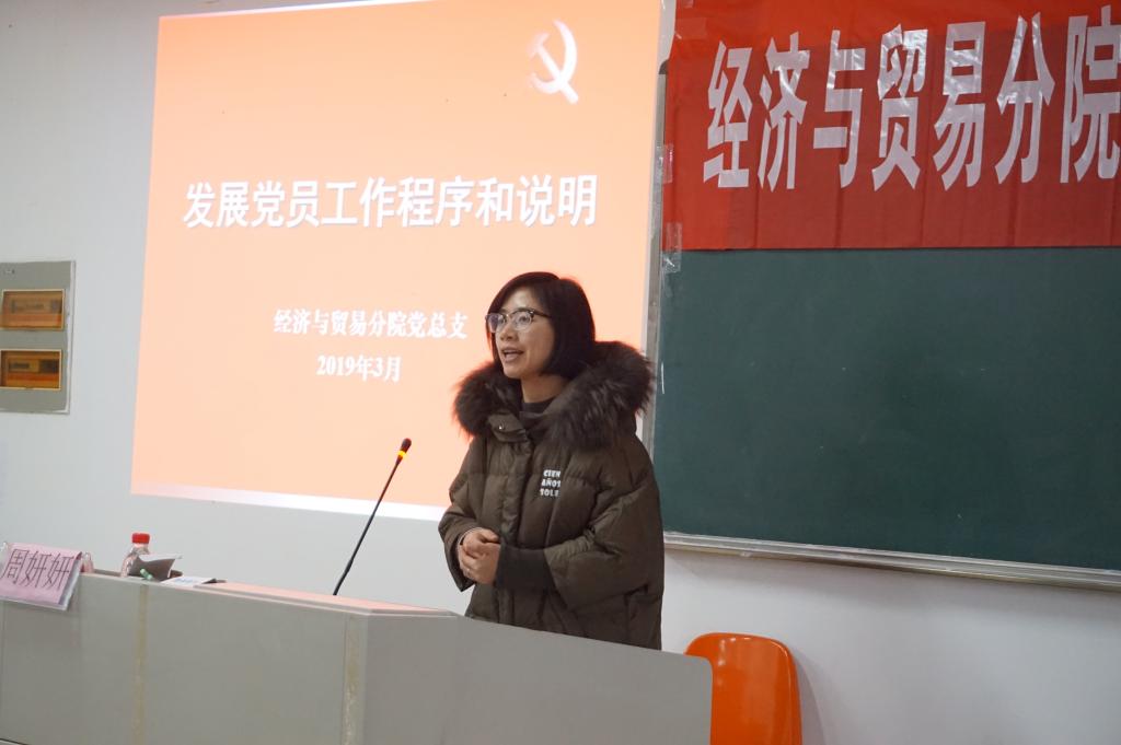 3月9日,经贸分院党总支在6号楼6202教室举办第二十一期二级业余党校入党积极分子的培训班。