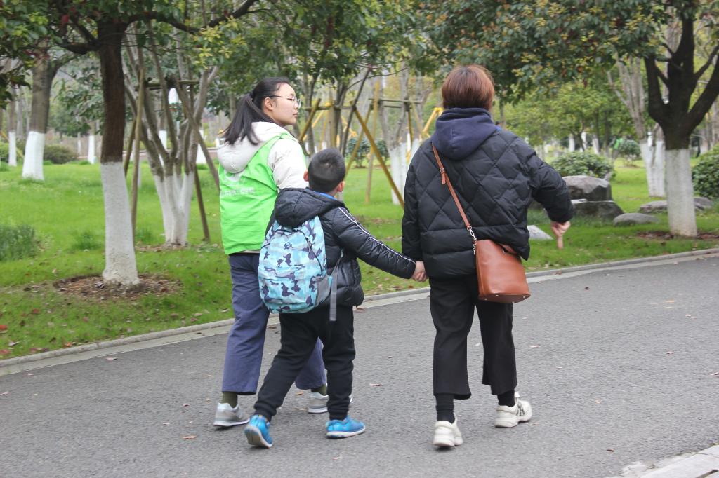 为了使志愿者们能胜任这个职务,志愿者们提前和“星星”家长沟通,了解孩子的特性,并根据自身条件选定一个孩子,一对一陪伴他们完成本次徒步走活动。活动当天,绿色啄木鸟志愿者们早早地来到杨府山公园,与老师和家长完成对接后,每个志愿者都找到了需要自己照顾的孩子,并牢牢地记住孩子的名字。活动前,志愿者们带领孩子们做热身活动,舒展筋骨,通过活动消除陌生感,建立友谊。在徒步过程中,志愿者们与孩子们一起唱歌、欣赏沿途风景,给孩子们讲故事,与孩子们捡沿途的垃圾,顺利完成了此次活动。在旁的家长看见孩子与志愿者们和谐相处,脸上露出了开心的笑容。