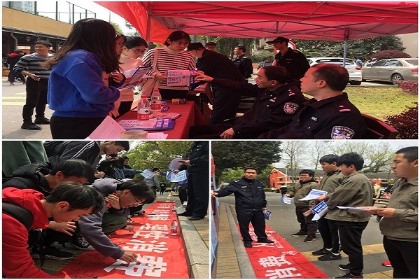 为加强高校学生安全教育,提高大学生自我防范意识,2019年3月28日,学院保卫处会同蒲鞋市派出所在学院6号教学楼前开展了大学生防诈骗、防不良网贷宣传活动。活动采取宣传展板、现场讲解答疑、发放材料和横幅签字等形式对全校学生进行防诈骗、防不良网贷宣传。