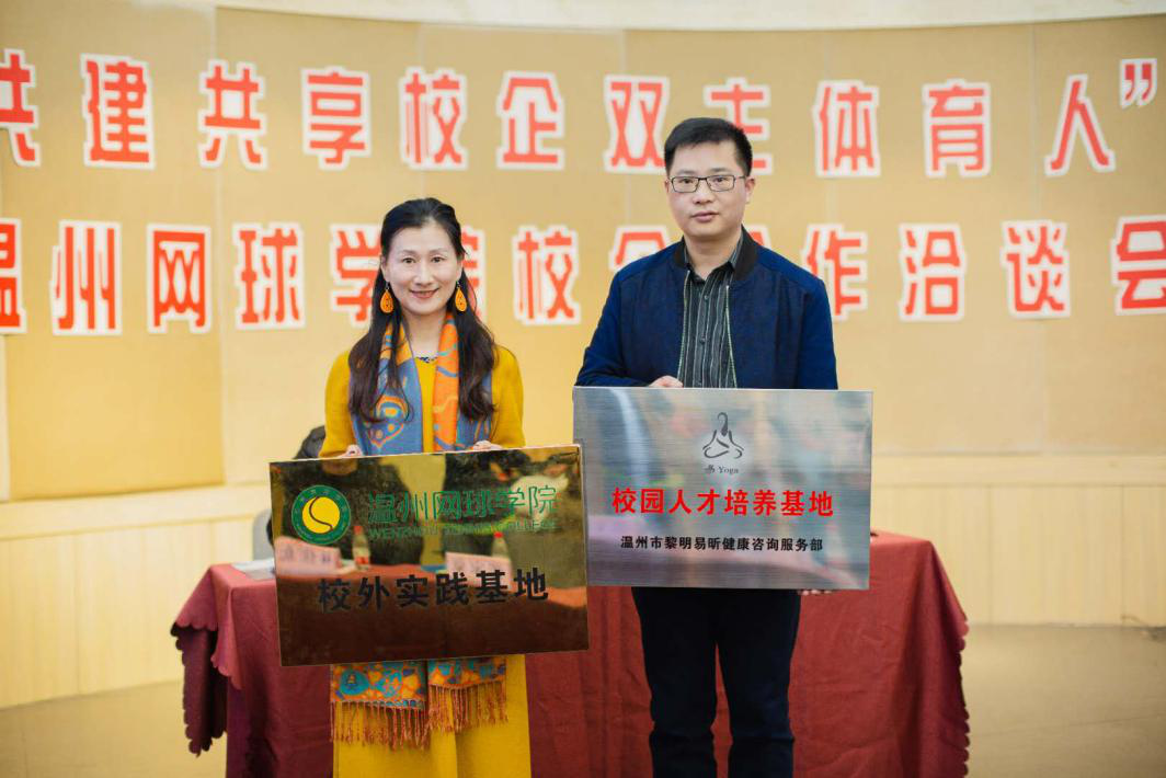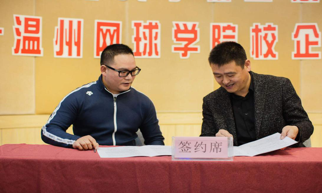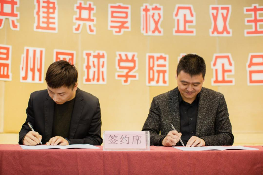 随着对企业的了解,温州网球学院副书记朱景多老师与到会八家企业逐一签订了校企共建合作协议并相互授牌。