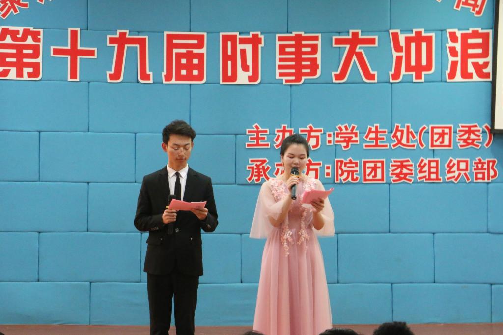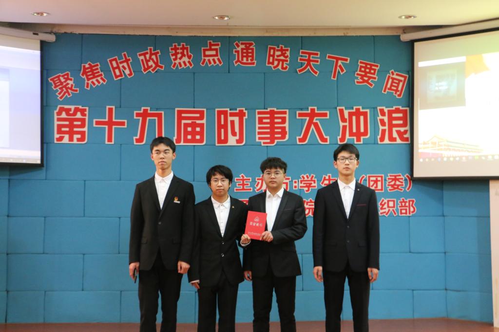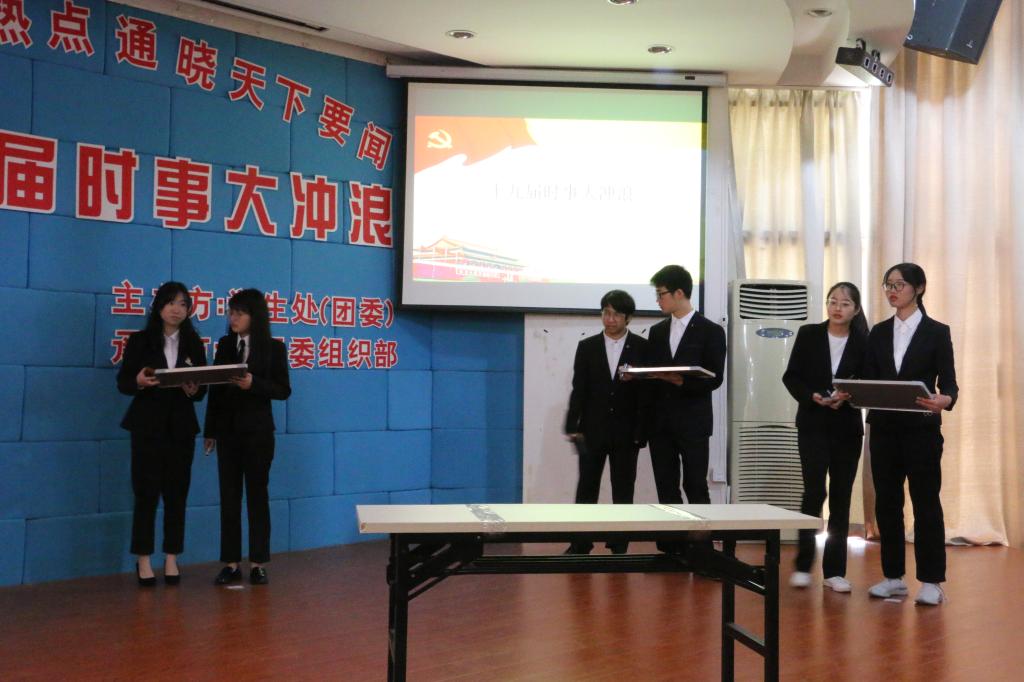 为了引导同学们爱国主义情怀,加强理想信念教育,关心国际国内时事。3月30号,由学生处(团委)主办、院团委组织部承办的“焦时政热点通晓天下要文”第十九届时事大冲浪活动在阶梯教室举行。各分院系组成代表队参加本次活动。