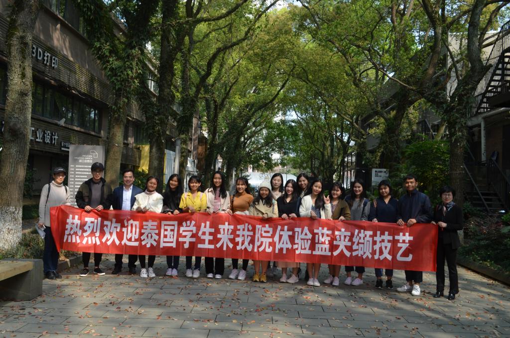 3月27日下午,12名来自泰国东方大学孔子学院的学生来到了我院设计分院葱哥工作坊蓝夹缬实验室,详细了解温州蓝夹缬技艺的传承与发展情况,并亲手体验了这项国家级的非遗文化。工业设计专业教学团队高度重视并全程参与了此次活动。