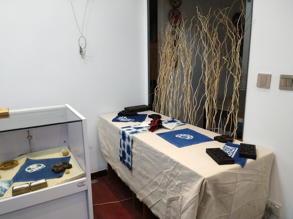 我院的蓝夹缬实验室成立于2018年10月,源于一支以传承和弘扬蓝夹缬文化为目标的师生创新创业团队。在设计分院领导和工业设计专业教学团队的关心和支持下,蓝夹缬实验室进行了大量关于蓝夹缬技艺活化的探索以及蓝夹缬文化的推广活动,开发了很多关于蓝夹缬的衍生产品,并在温州博物馆等单位开展了多场关于蓝夹缬古法印染的教学体验课程。