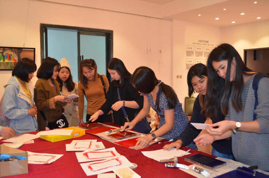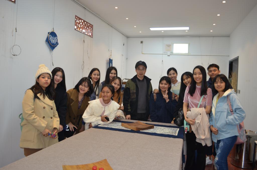 泰国东方大学孔子学院学生来我院体验蓝夹缬技艺