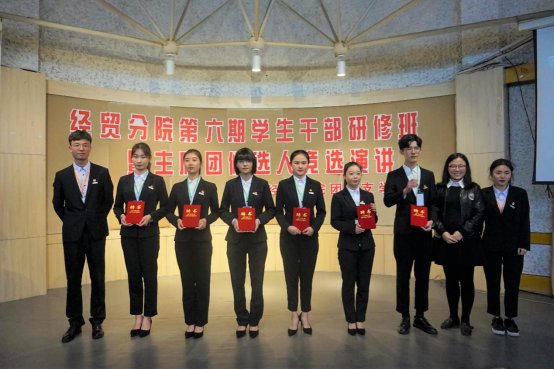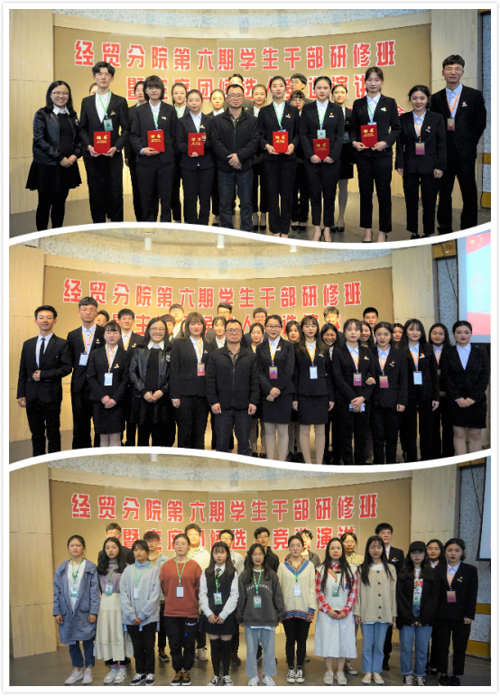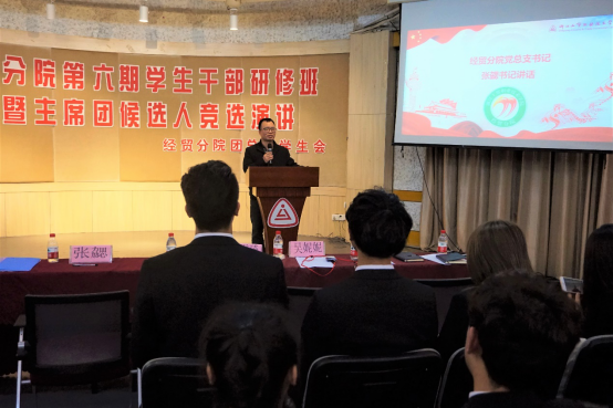 2019年3月28日晚18:00,经贸分院团总支学生会于多功能厅成功举办了经贸分院第六期学生干部研修班暨助理团候选人竞选大会。经贸分院党总支书记张勰,辅导员向政、郑雪琦、周妍妍、吴妮妮,学生会主席朱凯、团总支副书记钱余敏、17级团总支副书记丁凯丽,经贸分院团总支学生会代表以及班级学生、团员代表参与了此次活动。