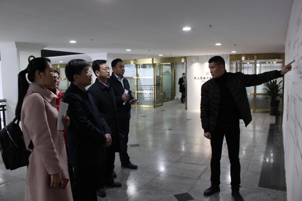 在知识产权服务园负责人王耀章等陪同下,东营市考察组一行参观考察了温州市知识产权服务园知识产权文化长廊、温州知识产权维权中心、温州市服饰知识产权快速维权中心及温州市知识产权第三方纠纷调解中心等三大平台服务大厅、园区入驻单位及设在知产学院的知识产权巡回法庭等。