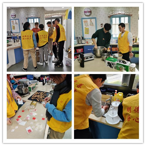 活动中,材料工程系聚合物义工队的队员们则是与活动中心的营养老师负责最受孩子们喜爱的“传统小吃”展台。为了本次晚会,队员们与老师提前一个月便开始精心准备各类美食的制作与展台的设计。满汉全席,冰糖葫芦,小茶倌儿,猪油膏,水果羹,各式各样的美食相信一定能让孩子们胃口大开。傍晚6点30分,离活动开始还有30分钟,传统美食的各个展台就排了长长的队伍。活动开始后,前来排队的人群络绎不绝,志愿者们在展台边协助老师积极的维护现场秩序,给孩子们分发小礼品,帮助老师整理搬运各种物品。人群太过火爆,在短短一个半小时内,二十多米长桌上的美食便已经分发完毕,成为了全场最早收摊的展台。回到休息室后,志愿者们已精疲力尽,从一开始的准备到活动结束后的整理,聚合物义工队的志愿者们从下午三点忙到了晚上十点。或许大家都没想象到2019年的最后一顿晚餐会是一份盒饭,2019年的最后一个夜晚会是这样的忙碌。此刻大家疲惫的身躯上浮现着一张张满足的笑脸,这或许就是我们的志愿精神!