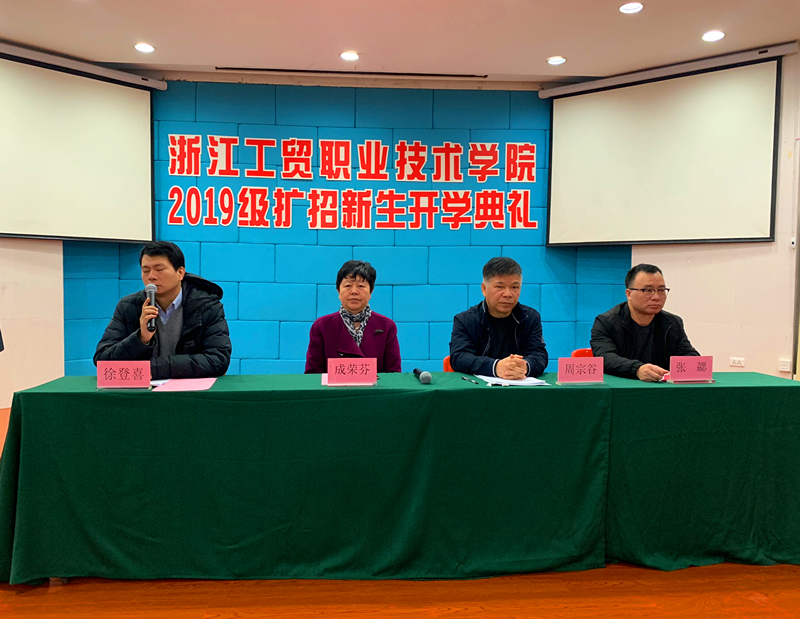 1月5日上午,浙江工贸职业技术学院2019级高职(扩招)新生开学典礼在阶梯教室举行。参加本次开学典礼的有浙江工贸职业技术学院成教学院院长周宗谷老师、成教学院党支部副书记、副院长徐登喜老师、经贸分院院长成荣芬老师、经贸分院书记张勰老师。此次典礼由徐登喜老师主持。