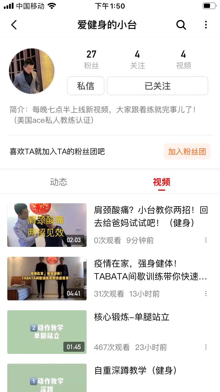我院图书信息中心方江虹老师采取居家“家庭总动员”抗疫,跟着温州大学体育学院健身专业研究生方向的儿子一起居家健身打响抗“疫”之战。方老师一家,充分应用互联网平台资源,并结合儿子专业健身知识优势,在微信群里开设了"零基础线上健身训练营",带领网友们一齐健身。白天,他们录制在家里锻练的视频,晚上在群里播放,带动起包括我院学生在内的众多网友们做居家健身运动来锻练身体,提高自身免疫力,她们一家以这种积极向上的居家抗疫方式来对抗这场没有硝烟的战争,值得我们每位学习、借鉴。目前,方江虹老师已经在今日头条、西瓜视频注册账号“爱健身的小台”,上传了大量视频与大家分享。愿广大师生也参与到抗疫“家庭总动员”之中来,一起锻练,充实宅在家里的抗疫生活。
