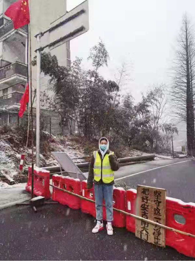 沈媛是我校设计分院工业设计1701班的学生,现在在浙江省嘉兴市与湖州市交界地区参与新型冠状病毒疫情防控工作。与其他志愿者的“单枪匹马”不同,沈媛是全家出动参与疫情防控工作。