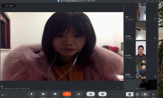 2月8日晚,机电1901班级的钉钉群热闹非凡,不断有班级同学加入进来视频,许久未见的同学们在视频上不停的寒暄。“同学们,疫情还未消除,防控进入关键阶段,在这特殊的时期,我们通过网络开一次线上视频主题班会。”随着班主任蒋子仪老师的一声令下,全体同学立即调整状态,投入这场别样的班会。