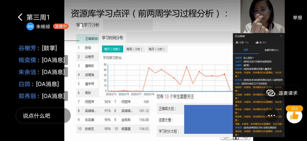 3月4日下午2点30,经贸分院商务英语专业朱杨琼老师《商务英语视听说》在钉钉群直播,这是经贸分院推出的第一门线上公开课,也是2月26日和2月28日分院开展的开放观摩课。在直播开始前15分钟,学院60多位老师来到直播间签到,此次线上课堂,与学生一起“上课”的老师比学生多。