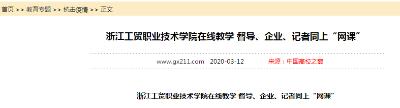 首先,分院安排经验丰富的老教师开设全校或分院公开课。开学第二周和第三周,两位督导朱杨琼老师和何丹老师带头开设了全校的公开课,登上了浙江新闻客户端和中国高校之窗网。从第四周起,每周安排一名老教师先开设分院公开课,并要求新教师参与观摩学习。