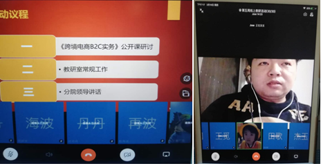 其次,新教师经过专业内的磨课、观摩和复盘等,从第五周开始,分期开设分院级公开课。第一位开设公开观摩课的教师是郭晓曼老师(老教师公开课是吴奇帆)。在电子商务专业团队的共同研讨下,郭老师的分院网络公开课取得了良好的效果,其授课心得整理为线上“五步教学法”转发分院和督导处。第二位开设公开观摩课的教师是钱亦儒老师(老教师公开课是叶杨翔)。为进一步结合专业建设提升教师授课能力,第五周分院安排国际贸易专业教研室举办首次公开观摩教研活动,把新教师钱亦儒的公开观摩课设为重点。专业教师、企业代表和督导从不同的角度提出了该课程建设和讲授的思路,对新教师的授课水平和专业建设都有很好的提升作用。