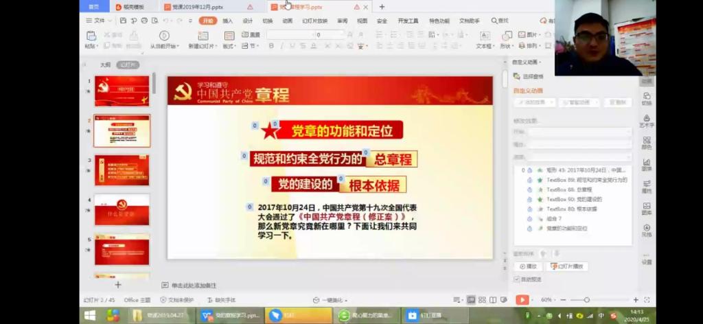 学生党总支第十八期二级党校培训班于2020年4月25日在线上利用钉钉举行。本次培训邀请了学生社团第一支部书记张慧老师,学生社团第二支部书记郑君山老师以及学生社团第三支部书记宋志超老师等为入党积极分子进行授课。