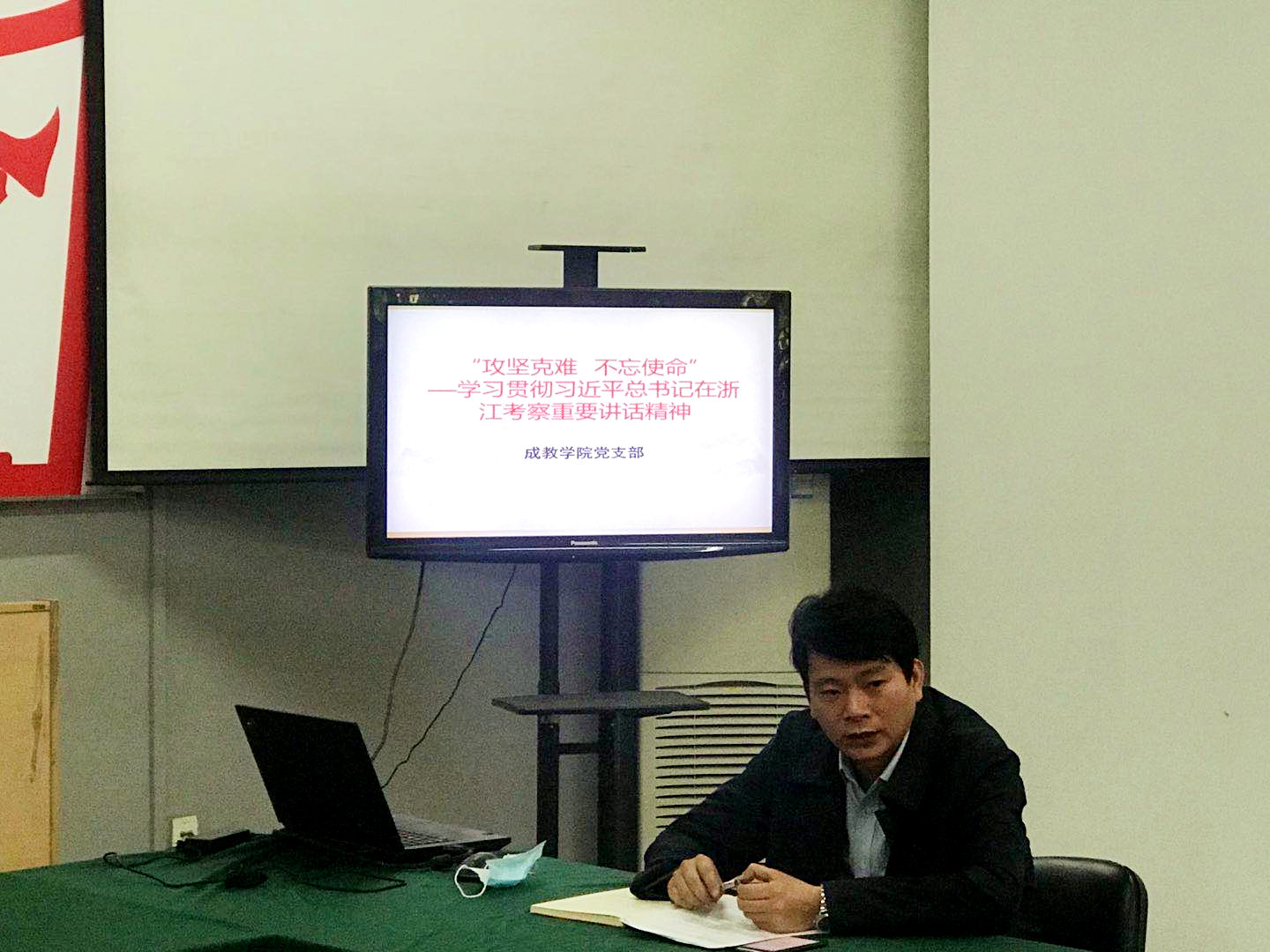 4月30日上午,成教学院党支部组织全体教职工在8108教室召开专题学习习近平总书记考察浙江重要讲话精神会议。会议由成教学院副书记徐登喜主持。