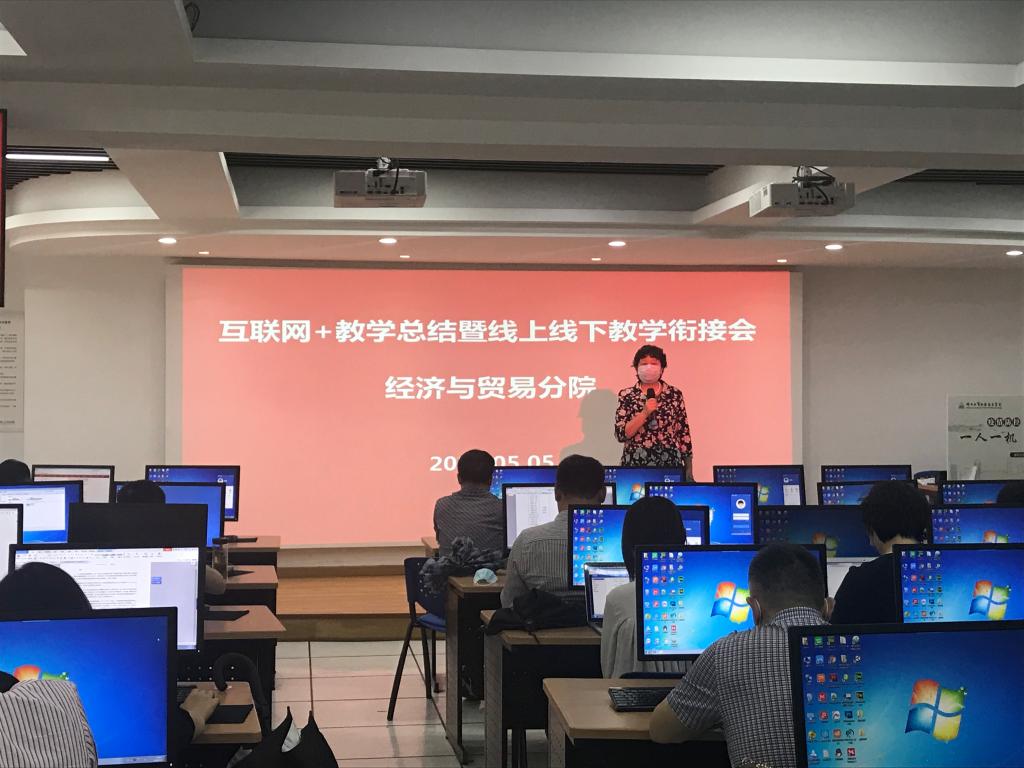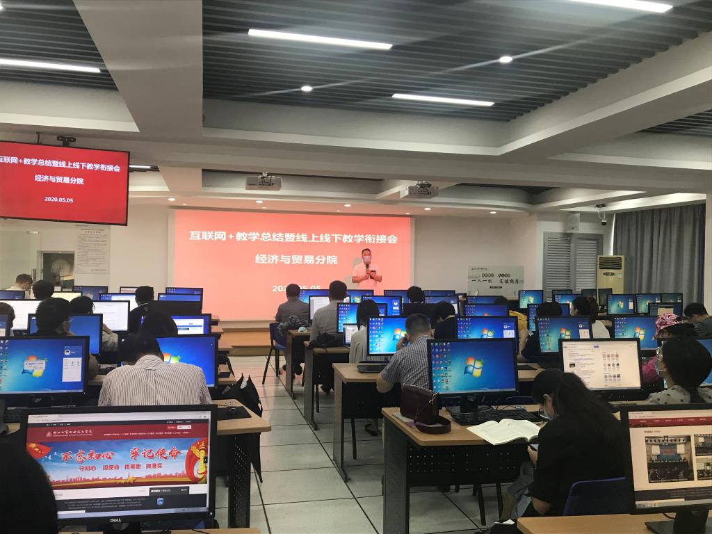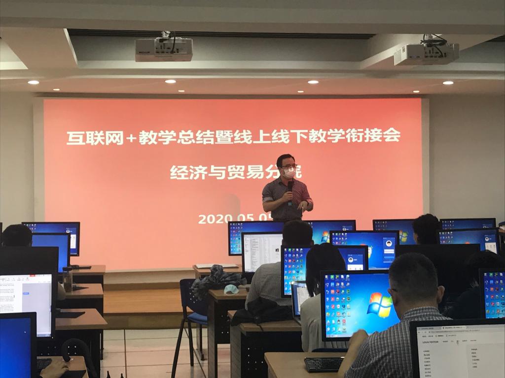 5月5日下午,经贸分院2020年春季学期互联网+教学总结会暨线上线下教学衔接研讨会在3505实训室召开。会议由施星君老师主持,经贸分院领导及全体教师参加了本次会议。