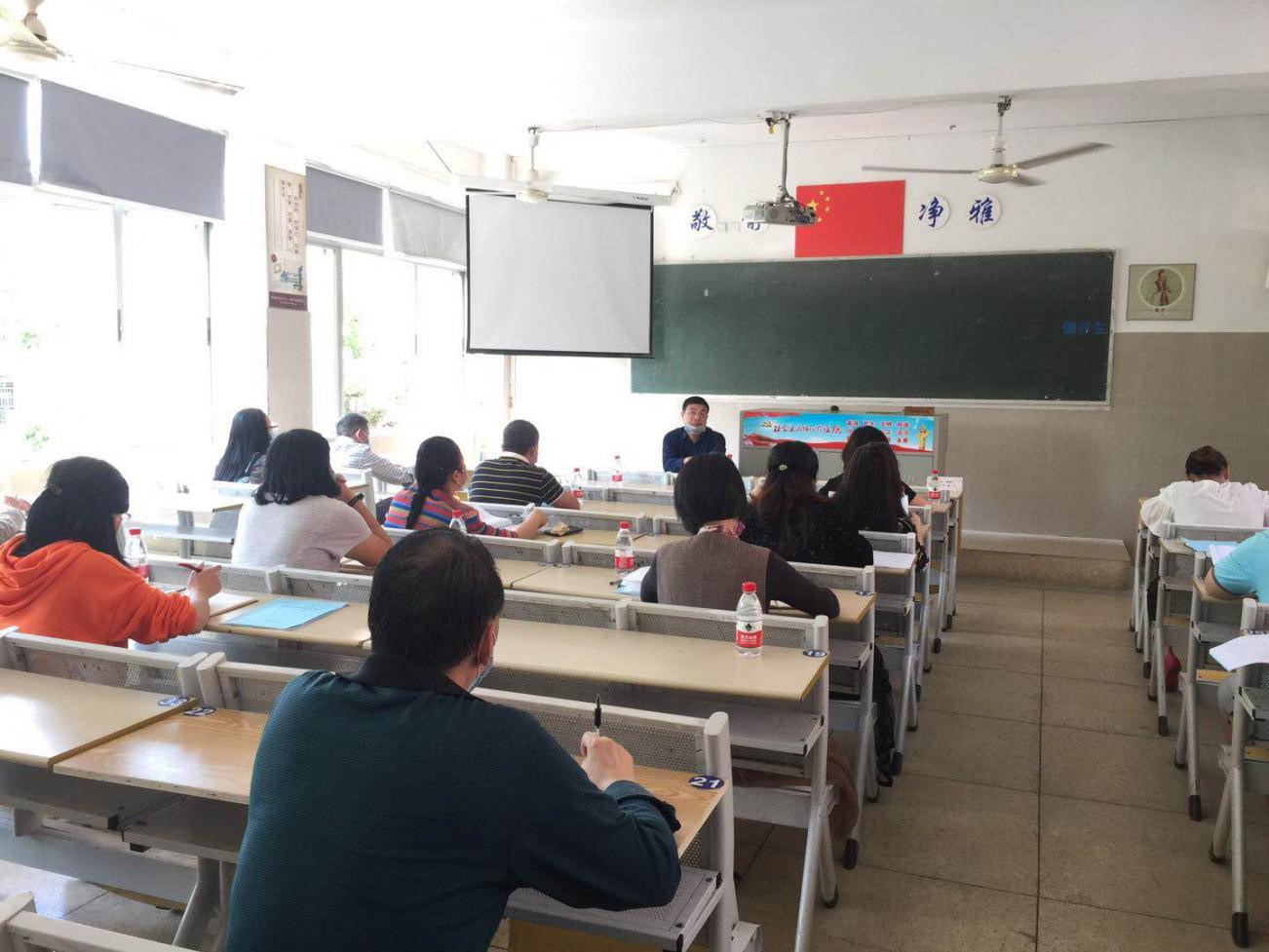 最后,党支部书记程瑞存带领全体教师认真学习了《2020年春季学期开学返校学习资料》,并就开学工作方案、学生返校方案、教学工作安排、线上教学测试、疫情防控应急预案等方面进行了详细解读和工作部署。要求全体教师要进一步提高政治站位,树立大局意识,精准排摸,做到线上线下衔接互补,协同学院共同做好疫情防控工作。此外,5月5日上午组织分院全体教师进行疫情防控应知应会测试,测试结果优秀。