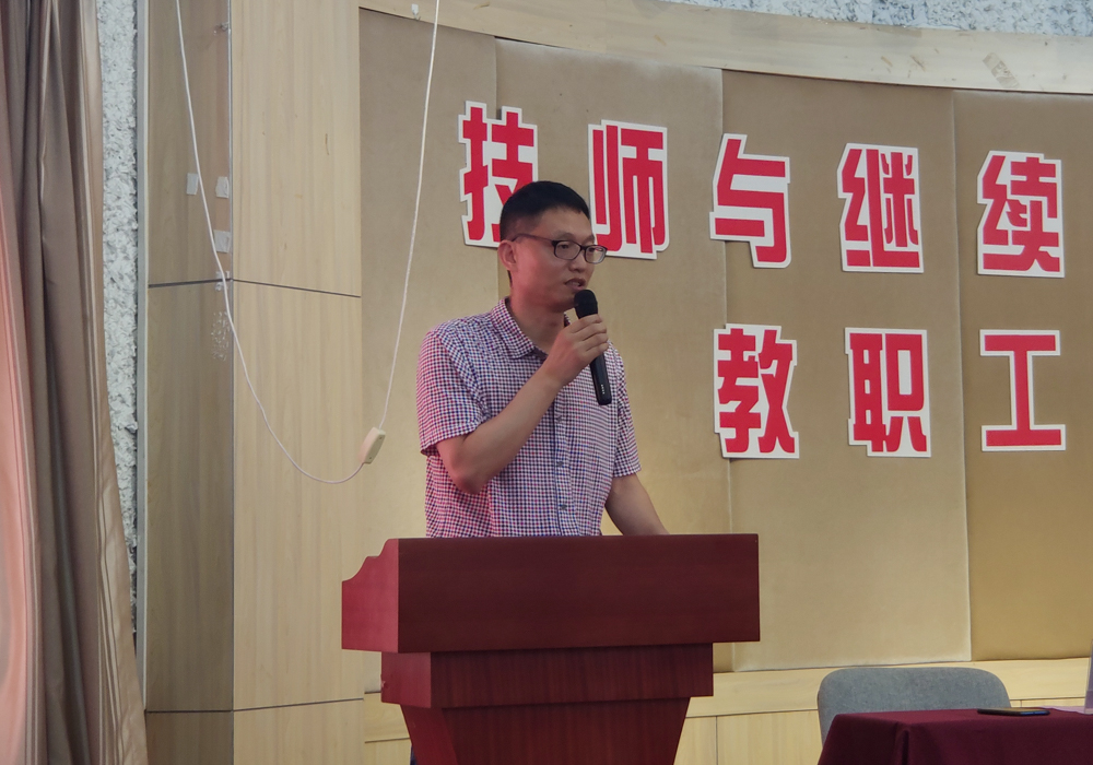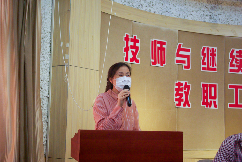 接着,分院院长黄路瓯同志从自我的工作经历、工作原则、工作目标等方面发表讲话,黄院长指出,技师与继续学院今后是一个大家庭,在工作中,一要讲团结、聚合力,希望全体教职工共同努力,把我们技师和继续教育建设的更好更强;二把牢现有培训项目、培训点不减少;三提升能力,拓展职业资格培训、职业鉴定及新型学徒制的培训力度,提高成效。