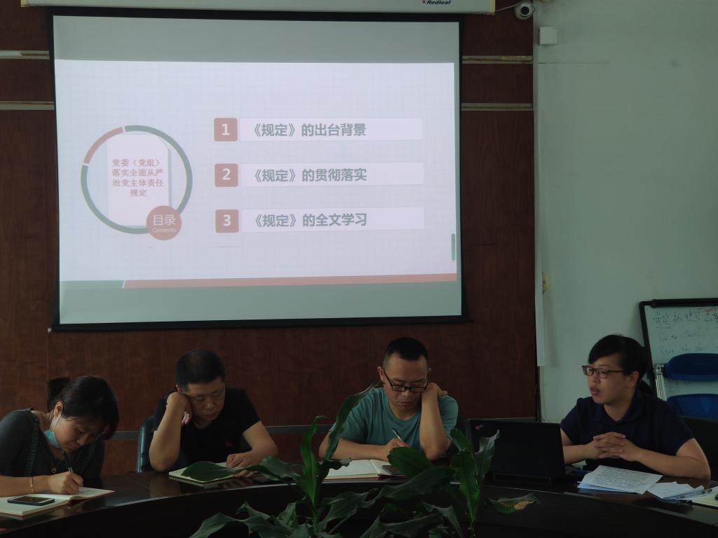 之后,黄爱素同志分别从《规定》的出台背景、《规定》的贯彻落实、《规定》的全文学习三个方面讲解分析了新出台的《党委(党组)落实全面从严治党主体责任规定》,强调了《规定》出台是在十九届四中全会之后,把全面从严治党制度作为党的领导制度重要组成部分,制定出台《规定》,是党中央健全全面从严治党责任制度的重要举措,各地区各部门各单位必须不折不扣的观测落实,不断提高履职尽责的本领。并且对《规定》中的重点内容和重要要求进行的细致地讲解,特别列举了高校在贯彻全面从严治党方面的关键环节和具体事项。希望支部党员能够提高思想认识,把《规定》作为履职尽责的重要依据,推动学院全面从严治党工作落在实处。