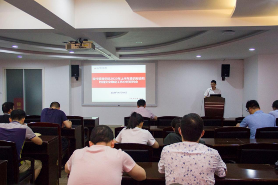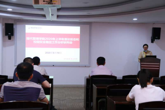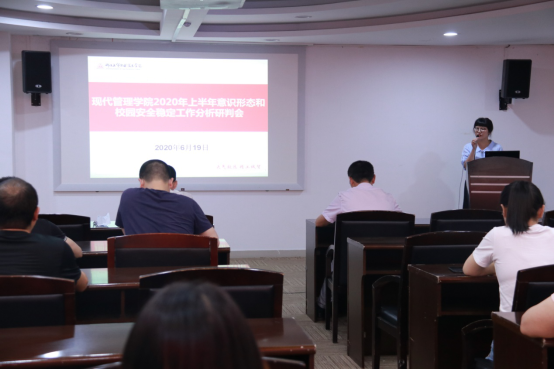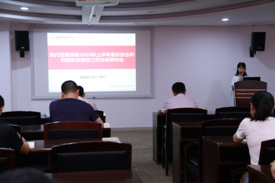 2020年6月19日下午,现代管理学院在温州风险投资研究院会议室召开2020年上半年意识形态和校园安全稳定工作分析研判会,现代管理学院党政领导、2018级和2019级全体班主任、全体辅导员参加会议,会议由现代管理学院副院长朱秀清老师主持。