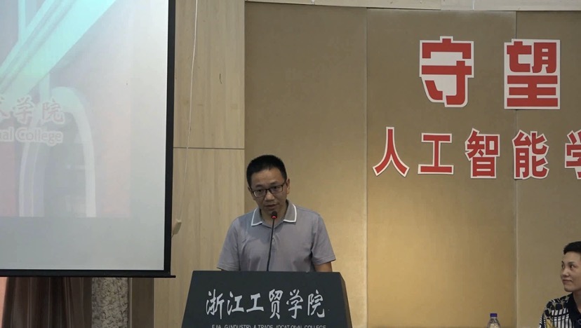 软件教研室主任金慧峰老师,作为教师代表发言。金老师对同学们表示了肯定和鼓励。人工智能专业是未来的朝阳产业,是求职热门,5G建设是新型基础设施的重要组成,是国家战略,而我们的同学正是专业对口的建设者;希望同学们担当时代责任,做最美追梦人。