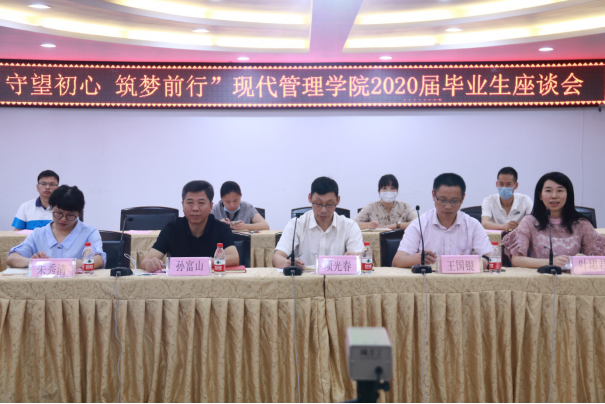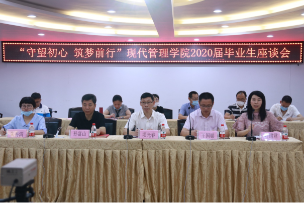 座谈会上,现代管理学院7个专业的2020届13位毕业生代表介绍了自己工作情况,分享了自己在校三年的学习经历、成长体验和收获,并对学校给与他们的各种学习、锻炼平台表示感谢,对每个老师的谆谆教诲和陪伴表示感恩。同时对各自的专业建设、教育教学管理等提出了真诚的意见和建议。