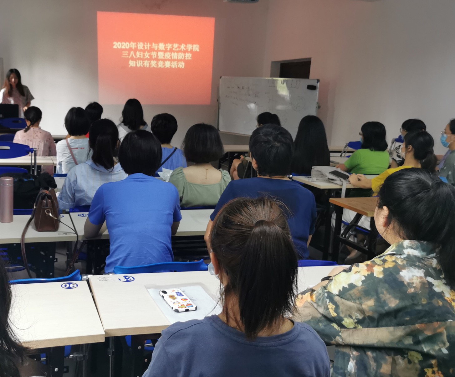 第110个国际妇女节是在全国人民万众一心、众志成城抗疫的非常时期度过的,为了鼓舞抗“疫”斗志,坚定抗“疫”信心,为这场生命健康保卫战助力,进一步普及疫情防控知识,体现对女教职工的关爱和关心。设计与数字艺术学院工会于6月30日下午在2312教室举办“别样三八节 答题助防疫”知识竞赛活动。