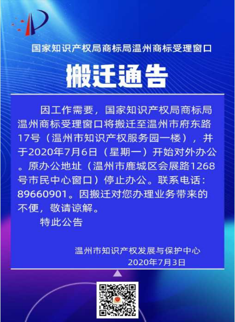 国家知识产权局商标局温州商标受理窗口搬迁至我院