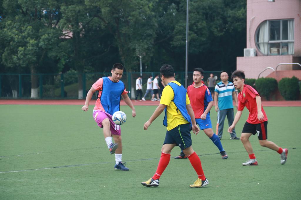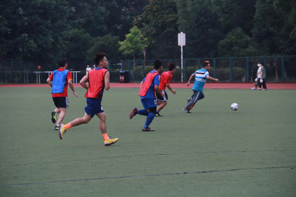 教职工足球协会成立后,师生对抗赛正式拉开帷幕。师生两队互相比拼你追我赶,比分不断交替直至打成5:5平。教职工足球协会正式成立前,大家已经自行组织了数场师生对抗赛,参赛师生的积极性得到了极大的调动,每周五下午师生悉数到场。为了弥补体能上的劣势,教职工队认真进行赛前准备,包括研究战术、排兵布阵,充足的热身更是中年足球爱好者必经的基本流程。