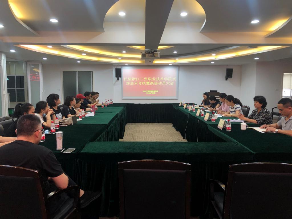 7月8日上午,民盟浙江工贸职业技术学院支部召开届末考核暨换届动员大会。民盟温州市委会副主委张秀华,民盟温州市委会组织部长胡迎春,学院党委委员、统战部部长郑凉以及民盟浙江工贸职业技术学院支部全体盟员参加,会议由支部组织委员周蓼蓼主持。