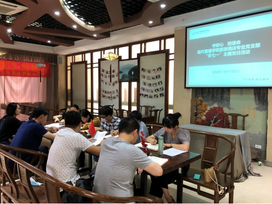 根据杭钢集团公司党委组织部关于开展庆祝建党99周年“七个一”系列活动的通知要求和学院党委的工作部署,2020年7月3日,现代管理学院旅游酒店专业党支部庆祝建党99周年“守初心、强使命”主题党日活动在学院大益爱心茶室举行,旅游酒店专业党支部全体党员参加,活动由党支部书记夏正超主持。