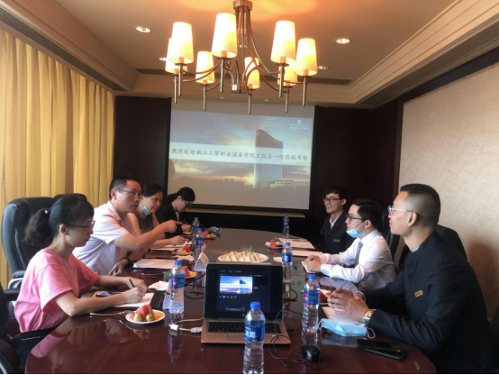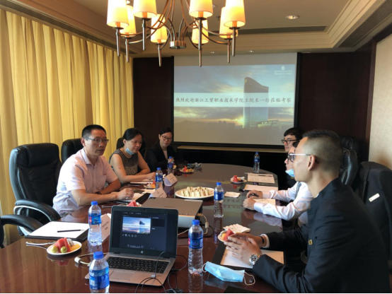 2020年7月20日上午,现代管理学院院长王国银一行赴温州香格里拉大酒店督查酒店管理专业新进教师下企业实践的工作情况并与酒店方洽谈校企合作的事宜。