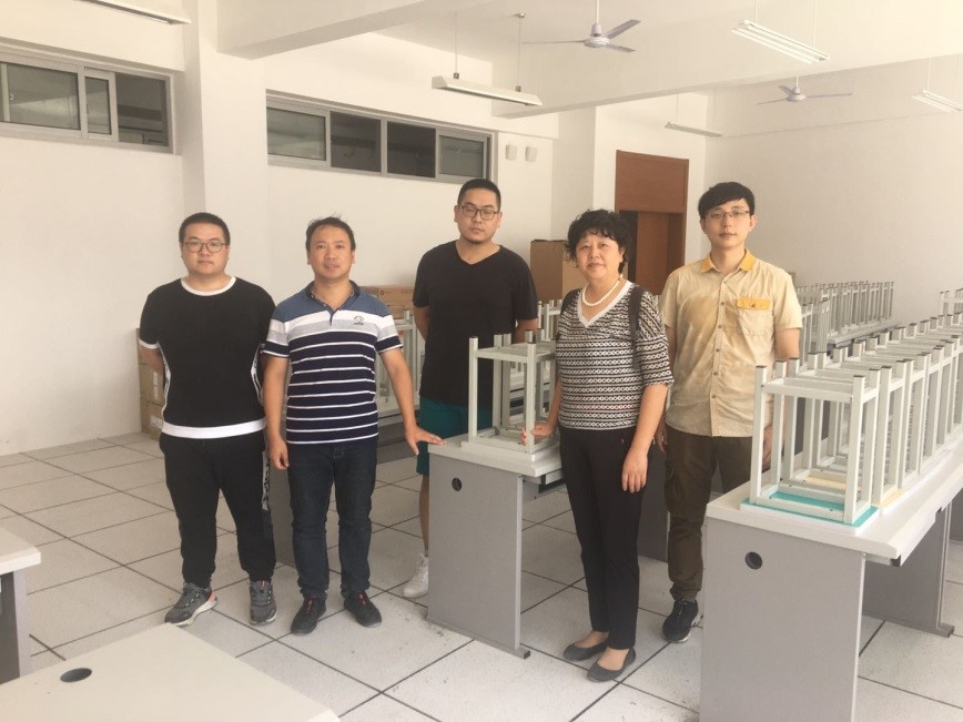 为了实现一校两区建设目标,为新学期教学精准服务,分院在进行老校区实训室检修基础上,于821日上午,国际商贸学院院长成荣芬、副院长陈碎雷带队考察新校区语音室建设情况(根据工贸学院整体教学规划,2020年起国际商贸学院将承担全校公共外语教学任务。为保障新形势下的外语实训教学需求,国贸学院在新校区将新建设两个共128个工位的语音室。)。821日上午,国际商贸学院实训教学管理团队一行五人先来到位于资讯大楼的语音室,成院长仔细询问了工程计划,实地检查了先期完工的地板、桌椅等用料、施工质量,表示一定要保质保量完成语音室建设,为学院在一校两区新形势下的实训教学提供有力保障。