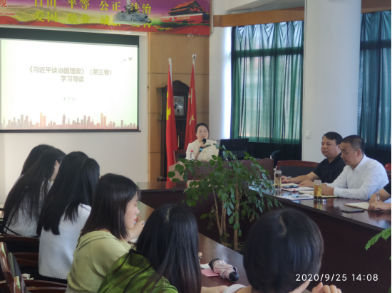 黄专途以“学习《习近平谈治国理政》第三卷学习导读”为题,围绕“核心要义、具体内容、学习要求、思想感悟”四个方面,分享读书心得体会。