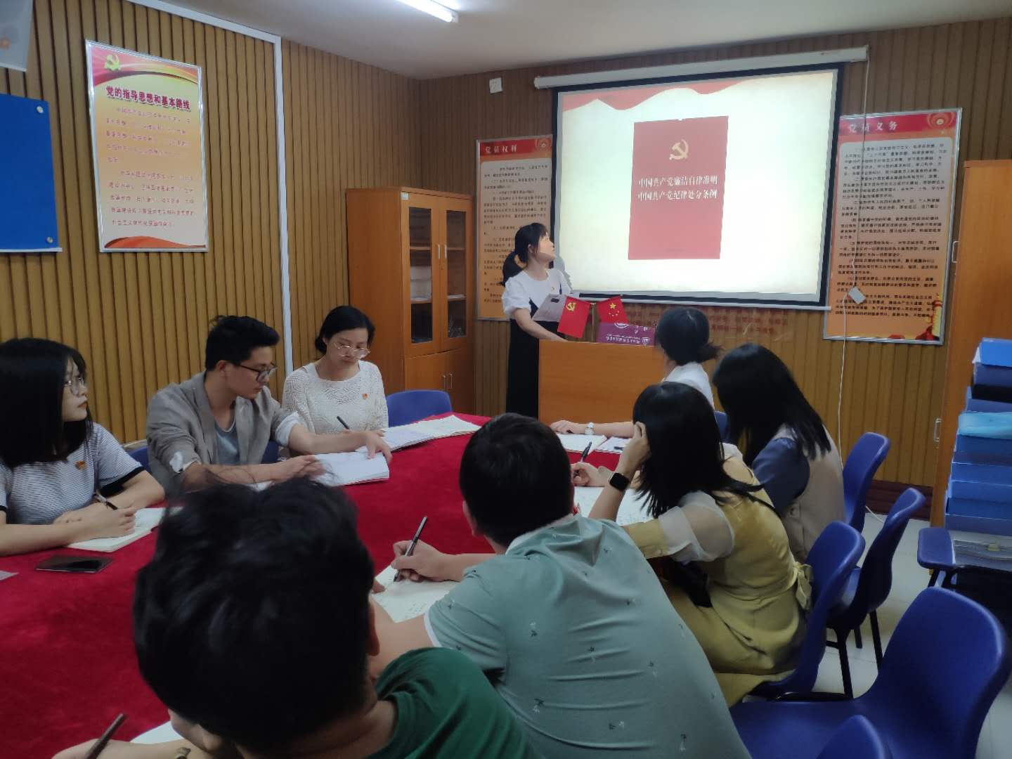 为了贯彻落实“学院2020年校园廉洁文化建设月”文件精神,学习廉洁知识,提升党性修养,2020年9月30日下午三点,现代管理学院学生党支部在党员之家开展“以廉为本·以德立身”廉洁主题党日活动,支部教师党员和学生党员参与学习,活动由学生党支部负责人黄丹华主持。