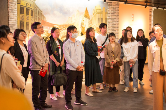 第一站,我们来到了温州城区革命历史馆。温州城区革命历史馆是鹿城区红色文化阵地提升计划项目之一,是市区开展党史学习、革命传统和爱国主义教育的重要文化阵地。进入展馆,旖旎分别从思想之光革命之火、艰苦斗争曲折前进、抗日战争激流勇进、全面胜利和平解放四个篇章,通过图文、历史影像等形式展示从1919年温州青年参与五四运动、1924年中共温州独立支部建立到1949年浙南全境解放这30年波澜壮阔的红色岁月。在场的老师和同学们神情专注,孜孜以求,了解到许多当时的地情党情知识,纷纷感慨于温州这座城的峥嵘岁月。
