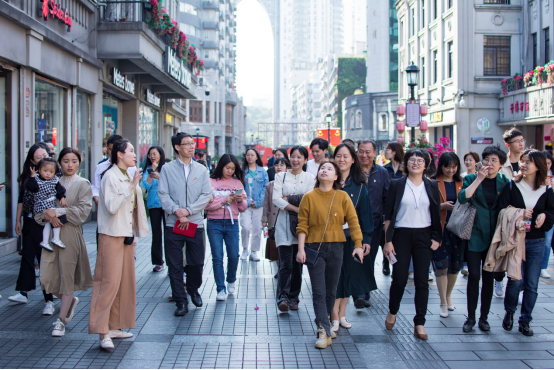 而后,跟随着讲解员我们来到了温州第一街——五马街。五马街是温州旧城古老的街道之一,也是著名的商业街。从它的得名、历史发展到保护改建再到资源引进的讲解,可以看出整个过程既体现了对历史的敬畏与尊重,又保存了建筑的年轮,还融合了现代时尚元素。如今的五马街已成为历史文化内涵丰富,兼具现代化功能的一条集购物、商贸、文化、娱乐、休闲为一体的综合步行街,成为来温学习旅游必去的地点之一。当天,师生党员们也是充分感受到了温州历史文化内涵的丰满,亦受感于街区多姿多彩的繁华景象,新增了对温州这座城的热爱。