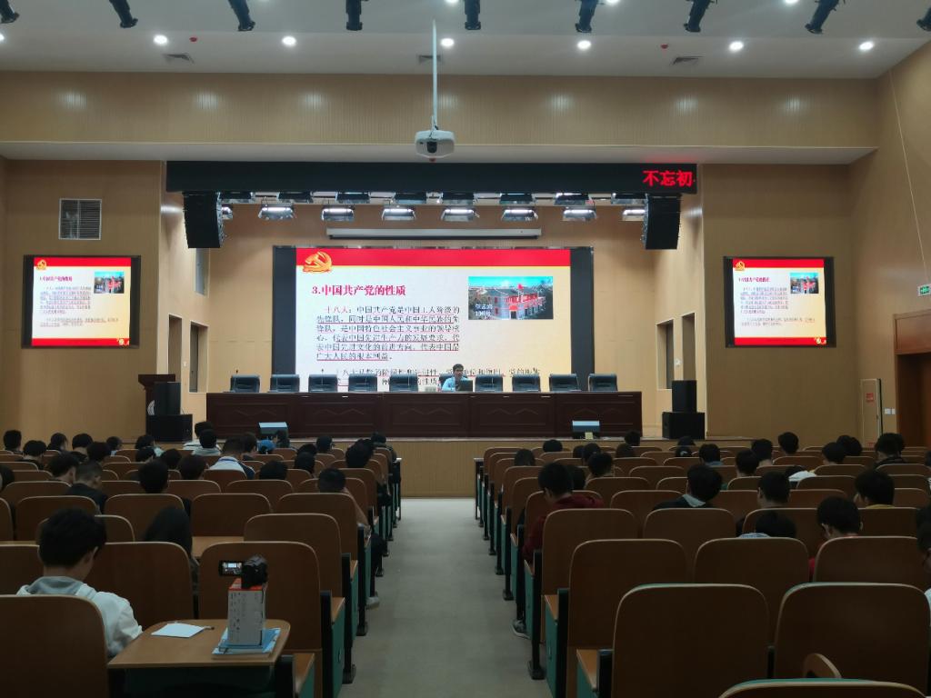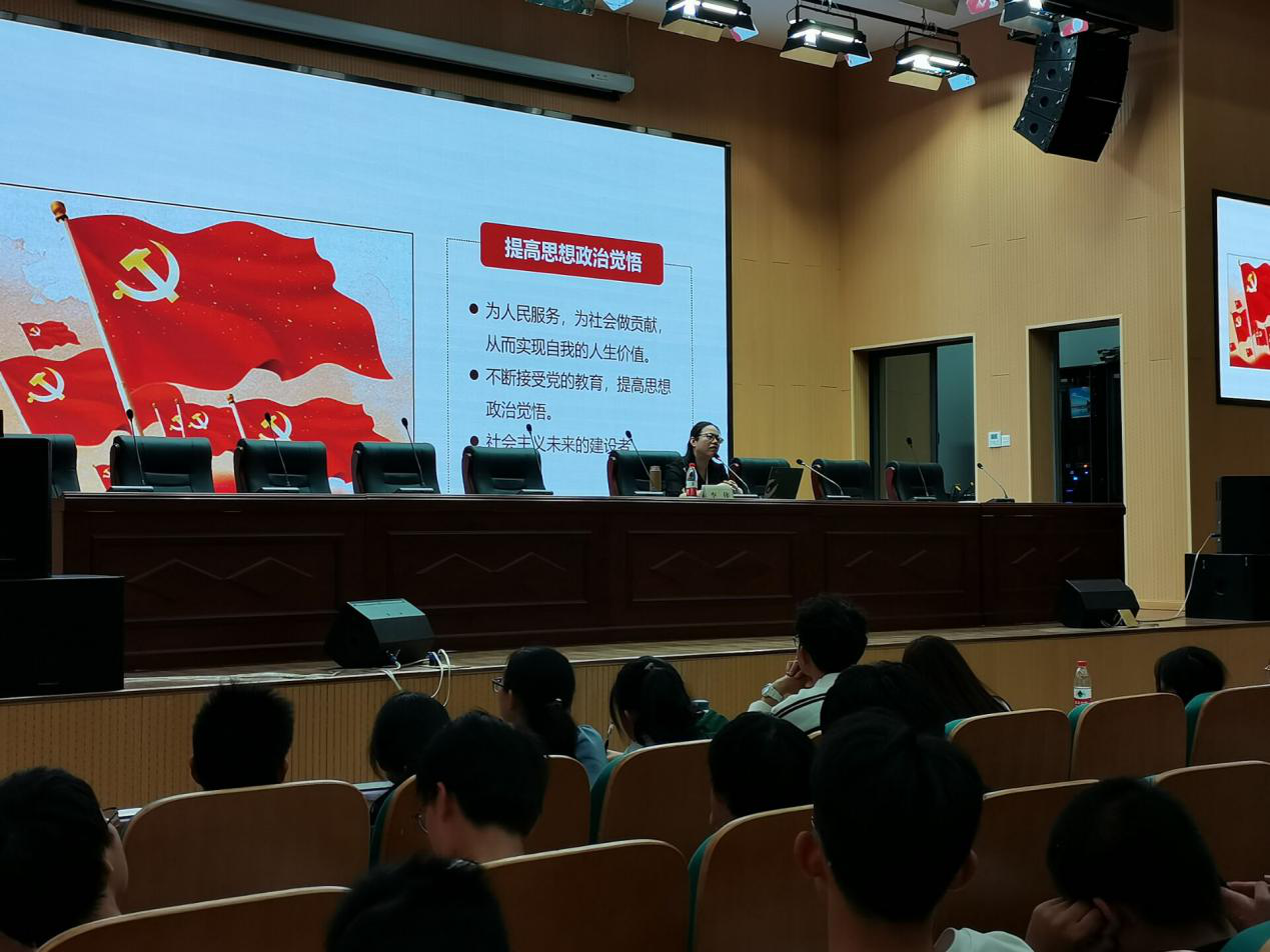 最后,党总支副书记李侠主讲入党流程。她介绍了大学生入党条件与流程,从递交入党申请书、列为入党积极分子、二级党校培训、列为发展对象、发展为预备党员、转为正式党员等程序,并嘱托全体同学要以一名党员的标准严格要求自己,努力学习,自强自立,奋斗不息,最终成为光荣的中国共产党党员。
