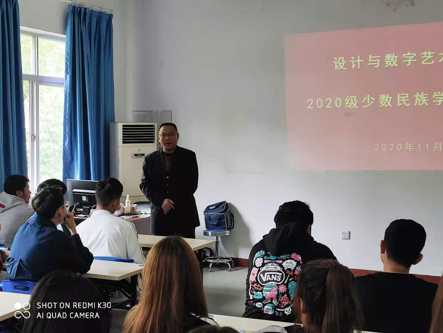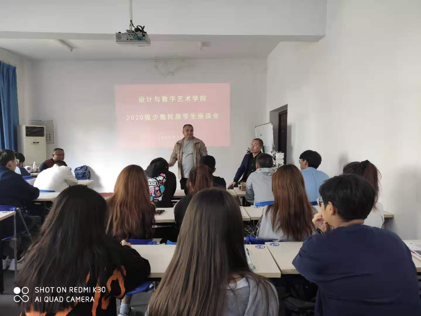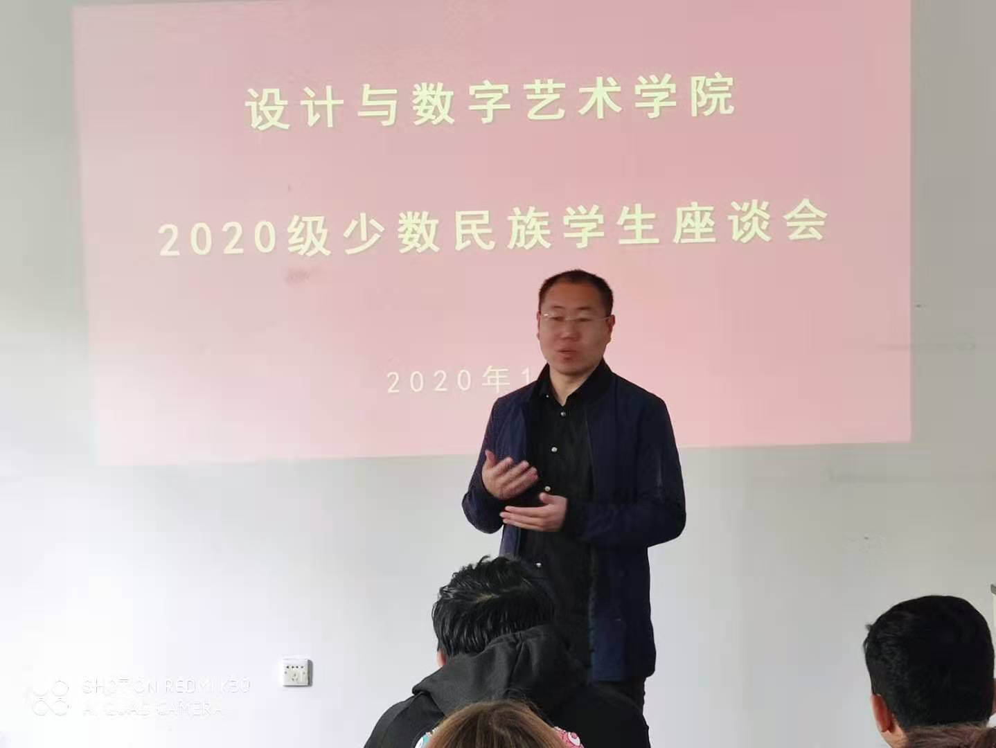 2020年10月,设计与数字艺术学院迎来了35名来自新疆地区的少数民族新生。经过一个多月的在校学习生活,少数民族新生基本对学院有了基本的熟悉,分院前期与部分少数民族新生进行了个别交流,为了全面了解35名少数民族新生在学院学习及住宿餐饮等生活状况,以及他们在校期间的各项需求,2020年11月13日,设计与数字艺术学院在科技楼2312教室专门召集35名新疆地区的少数民族新生进行座谈。设计与数字艺术学院党总支书记王本轶、副书记张云帆、新疆内派教师克里木江、组织员陈剑参加了座谈会。