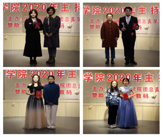 经过三个环节的角逐,本次比赛结果先后产生。最终,商英2004冯鲸颖,一路过关斩将,力挫群英,分别获得冠军;商英2001郑梓豪、国贸2003 刘舒洋分别获得亚军、季军;营销2001 彭菲菲荣获“最佳人气奖”荣誉称号。