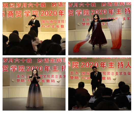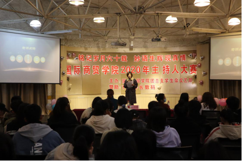 为迎接浙江工贸职业技术学院办学60周年,丰富校园文化生活,国际商贸学院于12月4日晚18:00在多功能厅开展了以“铭记岁月六十载 妙语生辉现真情”为主题的主持人大赛。本次大赛有幸邀请到温州公共外交协会理事兼副秘书长、商务素养课教师高田歌老师,学生处辅导员王一老师、分院辅导员吴妮妮老师,十四届校主持人大赛冠军金秀玮,学生会主席叶眉担任评委嘉宾,且有160余名商贸学子到场为选手加油助威。
